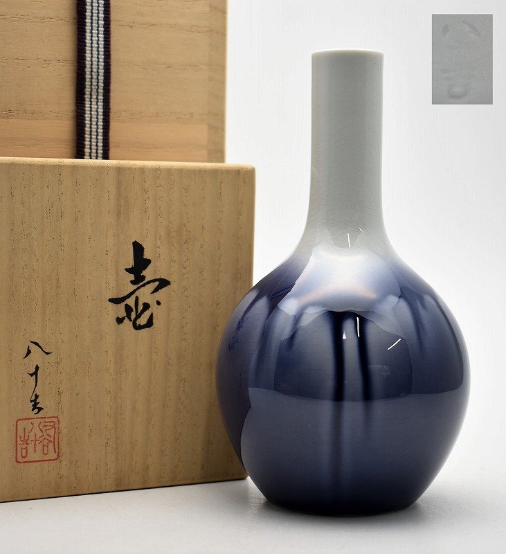 九谷焼買取 骨董品買取石川県小松市のお客様より◆九谷焼人間国宝 三代徳田八十吉造 碧明釉 壷◆をお買取り。