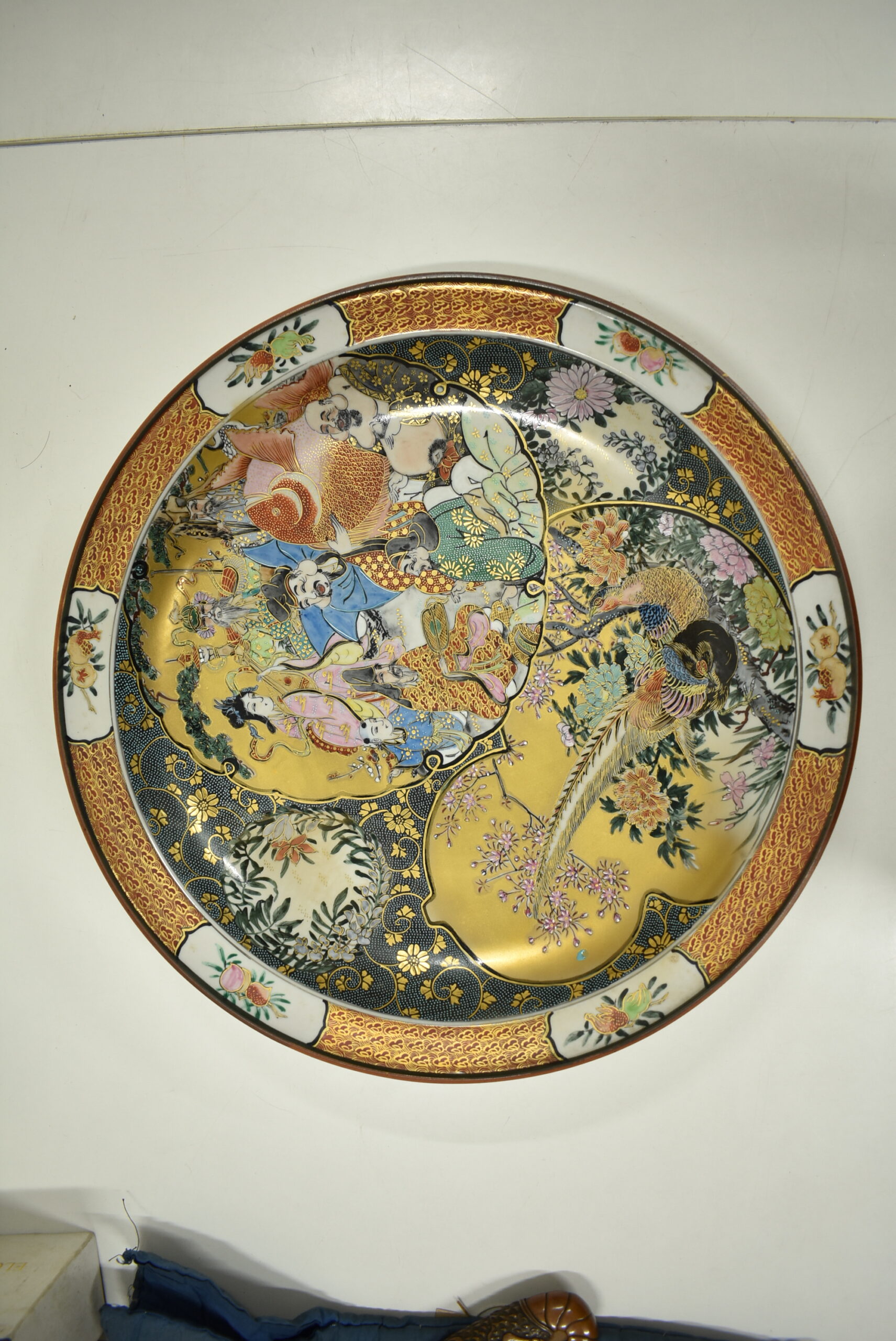 石川県金沢市のお客様に出張買取にてご依頼頂き、九谷焼人気作家 中田龍山造 金彩青粒花鳥七福神図 大皿を買取りさせて頂きました。