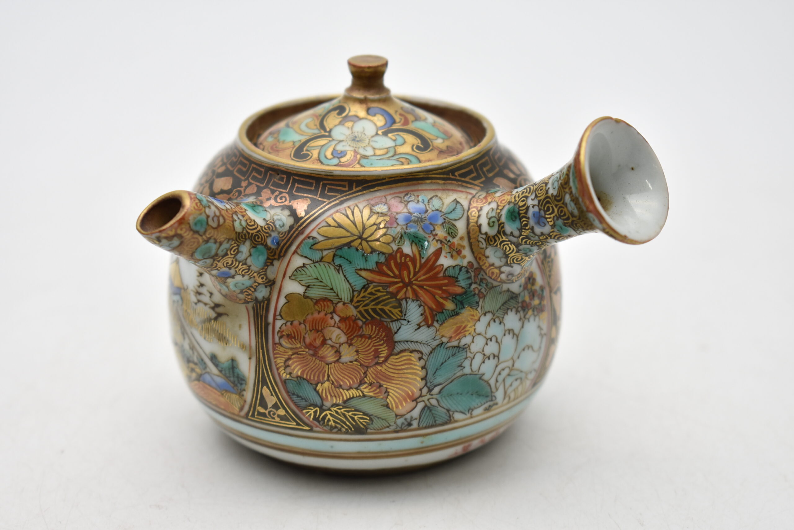 九谷焼買取 骨董品買取石川県加賀市のお客様より◆九谷焼 明治期名工 沢田南久造 鳳凰花詰金襴手 横手 急須◆をお買取り。