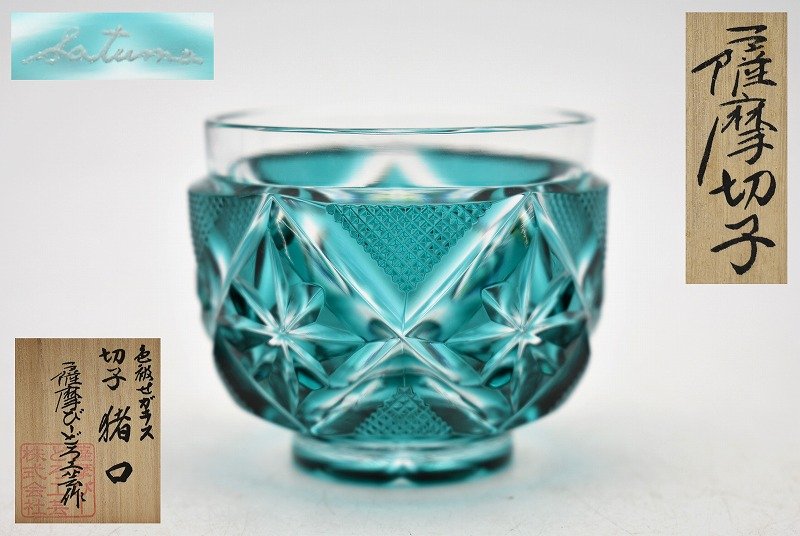 石川県野々市市のお客様に出張買取にてご依頼頂き、薩摩びーどろ工芸作 復元 薩摩切子 緑 色被せガラス 猪口を買取りさせていただきました。