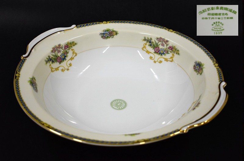 石川県白山市のお客様に出張買取にてご依頼頂き、オールドノリタケ NORITAKE RC ヤジロベー印 1937 昭和12年 名古屋鉄道局 鉄道職員表彰式記念 盛器を買取りさせて頂きました。