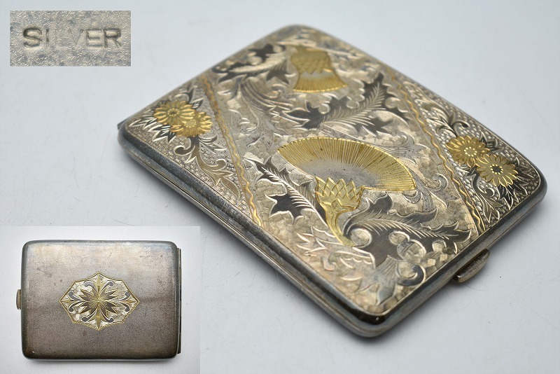 古道具買取 洋風アンティーク買取【富山県小矢部市】のお客様より◆銀製 彫金象嵌花紋 シガレットケース 煙草入れ◆をお買取り。