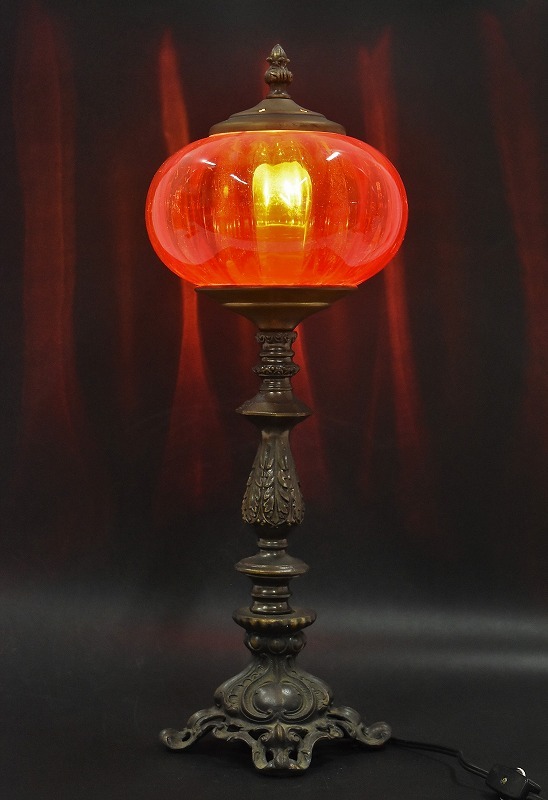 石川県白山市のお客様より出張買取にてご依頼頂き、アンティーク 照明 卓上 赤色硝子テーブルランプ を買取りさせていただきました。