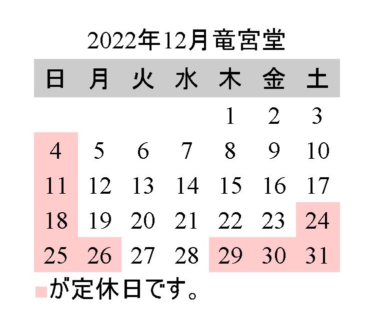 【年末年始休暇のお知らせ】R4.12/29~R5.1/5の期間はお休みさせていただきます。