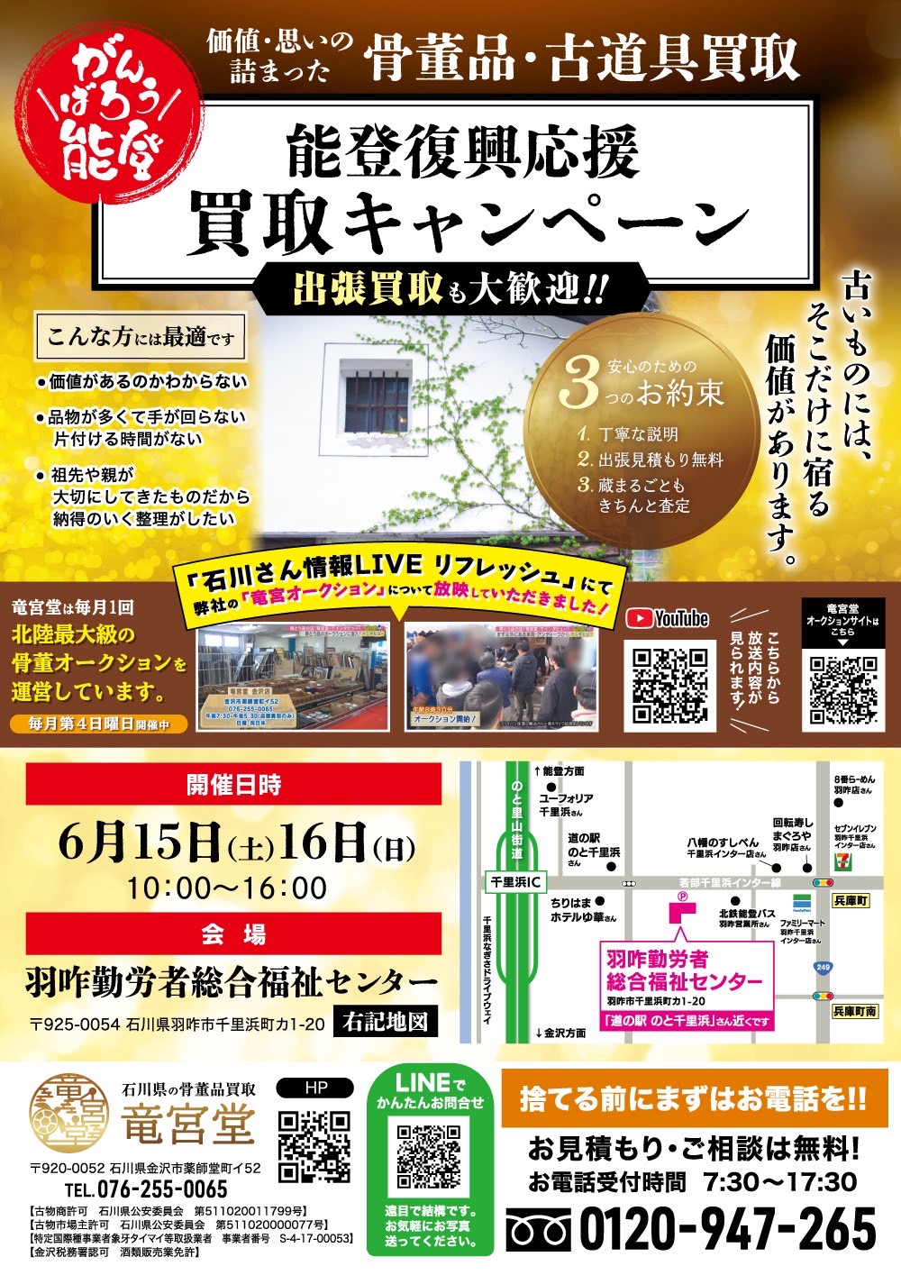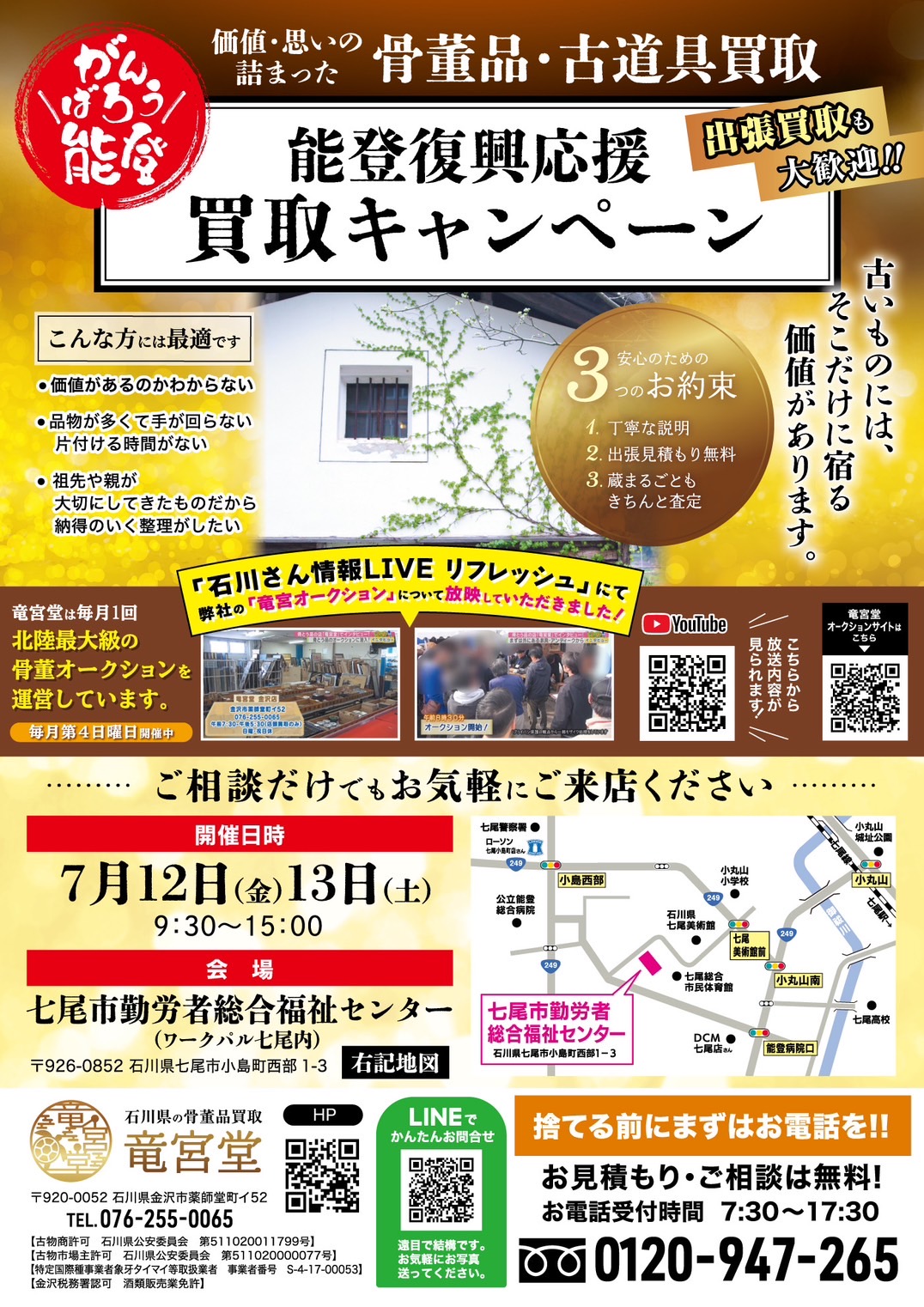 能登復興応援買取キャンペーン 7月12日(金)~7月13日(土) 9:30~15:00